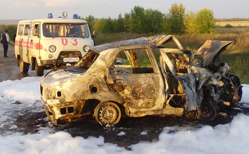 Водитель и пассажиры иномарки сгорели в ДТП под Саратовом