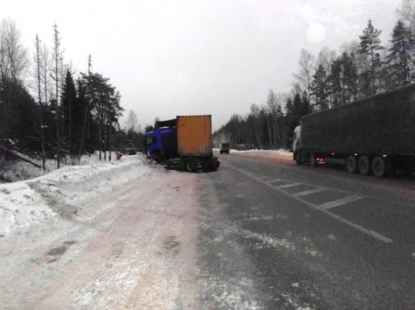 Сегодня,17 марта, на 96-м километре федеральной трассе Иркутск-Чита произошло крупное ДТП с участием большегруза. Авария случилась на территории Слюдянского района Иркутской области возле поселка Култук.По предварительной версии полиции, водитель автомобиля “Scania” с 17-тонным прицепом не справился с управлением на затяжном спуске и наехал на бордюр. От этого автомобиль перекинулся на правую сторону, в результате чего три человека оказались зажатыми в кабине.