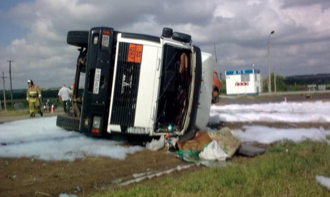 В результате опрокидывания бензовоза под Оренбургом произошел крупный разлив нефти
