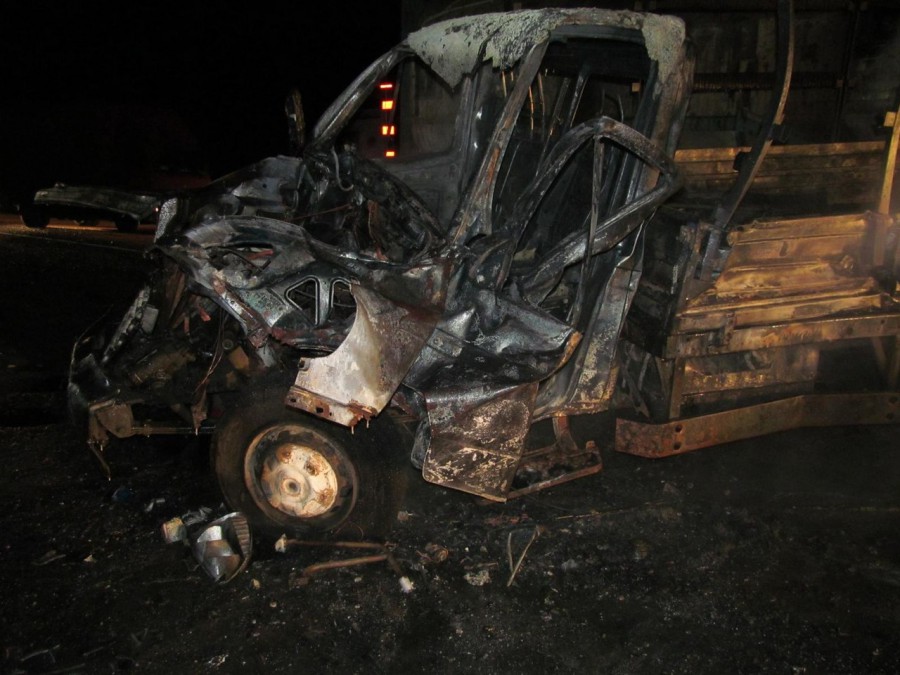 В результате столкновений загорелись три автомобиля – МАЗ, «Газель» и легковушка, водителя которой извлечь из машины не успели – мужчина сгорел заживо – его личность пока не установлена.