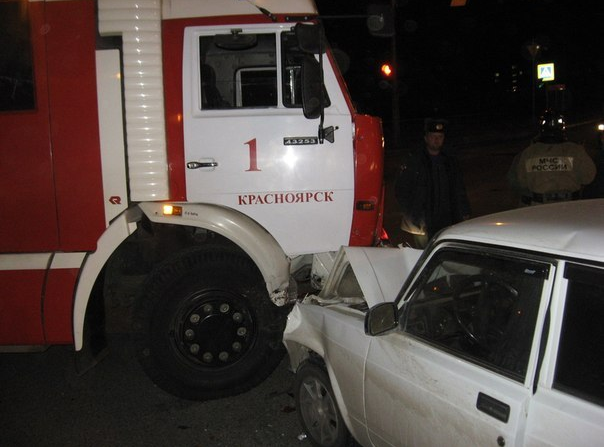 В городе Красноярске сотрудники правоохранительных органов проводят предварительную проверку в связи с дорожно-транспортным происшествием, в результате которого столкнулись два автотранспортных средства – легковушка ВАЗ-2105 и пожарная машина, ехавшая с включенными проблесковыми маячками.Согласно данным пресс-службы ГИБДД города, все случилось 14 ноября примерно в 07:00 часов утра по мск времени. Легковой автомобиль марки ВАЗ-2105, ехавший со стороны ул. Молокова по направлению к ул.Березина, врезался в пожарную машину в тот момент, когда та поворачивала на ул. Мужества.