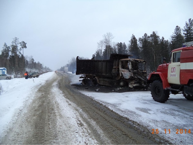 25 ноября на 494-ом километре автотрассы «Сургут-Тюмень» произошло крупное ДТП, в результате которого друг в друга врезались четыре большегрузных автомобиля. Согласно данным пресс-службы, все машины после столкновения загорелись.По предварительной информации, большегруз МАЗ, ехавший на большой скорости, столкнулся со стоявшими на обочине самосвалами «Урал», «Скания» и «Мерседес». Удар был настолько мощным, что один из грузовиков был отброшен в кювет. Затем все машины загорелись.