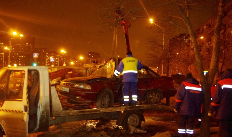 Столб был оторван от земли и свисал, зацепившись за машину. Не исключалась вероятность того, что он мог упасть на троллейбусные провода. Поскольку подъемный кран пожарной охраны был доставлен не сразу работникам «Горэлектротранса» при помощи своей вышки удалось самим выдернуть столб из автомобиля, так что троллейбусы продолжили свое движение, не выбившись из графика.