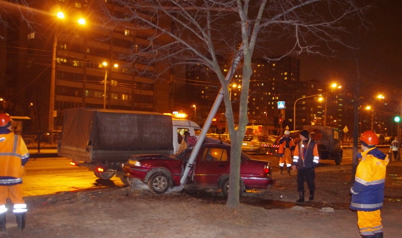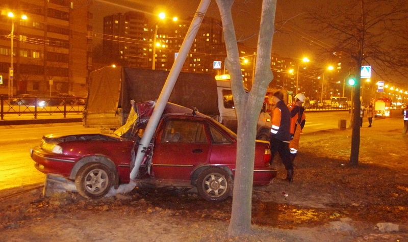 В воскресенье в вечерние часы на ул. Софийской произошло серьезное дорожно-транспортное происшествие, в результате которого сильно пострадал водитель «Нексии». Согласно данным пресс-службы ГУ МЧС по С-Петербургу, все случилось рядом с домом № 32 по ул. Софийской примерно в 20:00 часов по мск времени. Водитель «Нексии» врезался в столб с такой силой, что оказался зажатым в салоне своего авто. На место ДТП выехала бригада спасателей, которые незамедлительно занялись деблокировкой пострадавшего. Освобожденный водитель вскоре был доставлен в больницу.Со слов очевидцев, «Нексия» срезала столб по причине того, что ее подрезала маршрутка. Чтобы избежать столкновения, водитель вырулил на газон и врезался в столб, на котором была размещена видеокамера, транслировавшая на пульт дежурного дорожное движение на этом участке дороги. Врачи зафиксировали у водителя серьезную травму ног, которые некоторое время были очень сильно зажаты.
