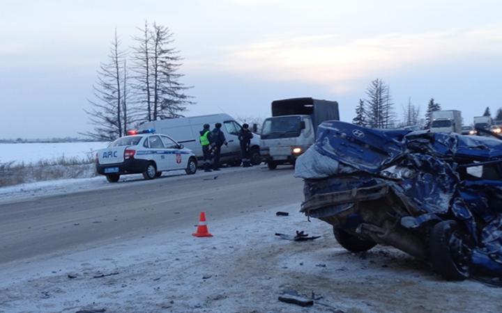 В четверг, в утренние часы, в Усольском р-не на федеральной автотрассе Р-255 «Сибирь», расположенной недалеко от пос. Тельма, произошло крупное ДТП, в котором между собой столкнулись шесть машин.Согласно данным пресс-службы ГУ МВД по Иркутской обл., уже есть предполагаемая виновница аварии – автоледи, управлявшая автомобилем «Хёндай Солярис», ехавшая со стороны Иркутска. Решив обогнать грузовик, она оказалась на встречной полосе, где врезалась в микроавтобус «Митсубиси». Столкнувшиеся машины задели еще четыре автотранспортных средства, одно из которых съехало с дороги и перевернулось.