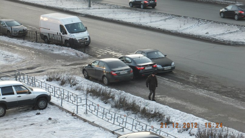 две машины на тротуаре Город Казань, ул. Короленко напротив магазина Евро интерьер. Две машины перегородили тротуар. Дата: 21-12-2012, 17:56