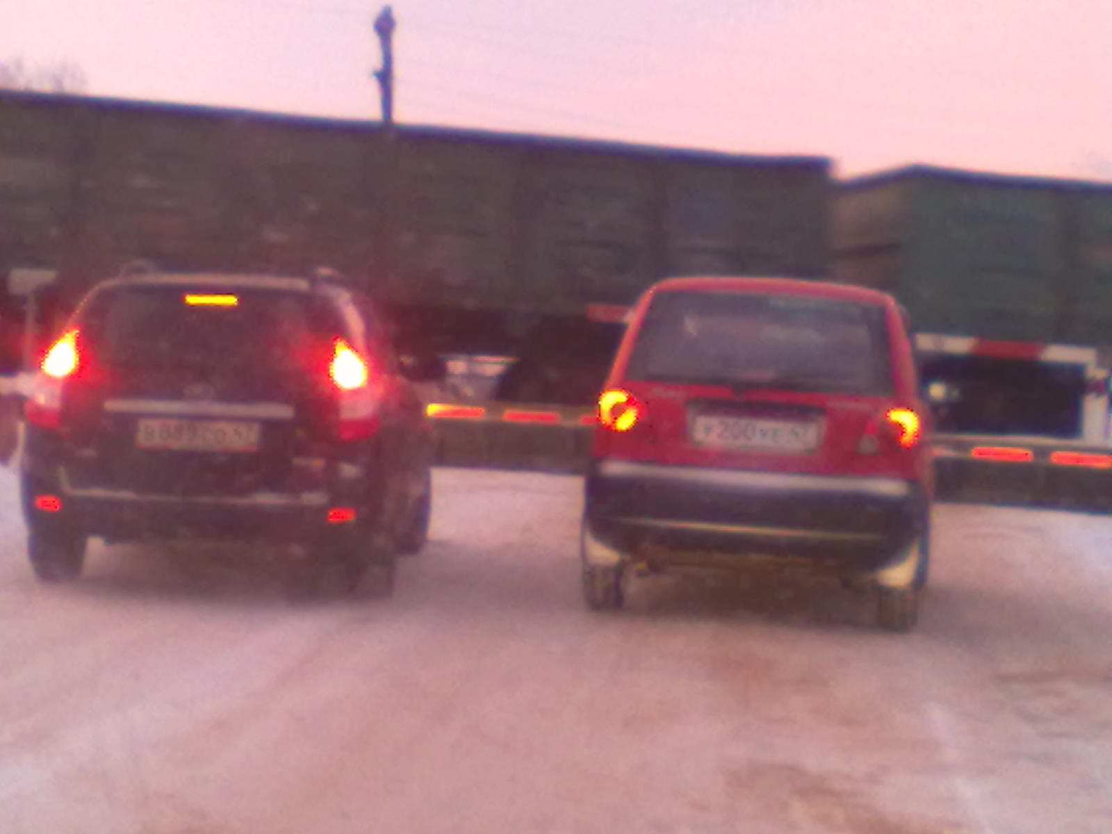 Темная лада приора с гос. номером "в 888со 47 рус", 30 декабря в 10 часов 47 минут. Ленинградская область, кировский район, станция Войбокало, железнодорожный переезд 92 км.