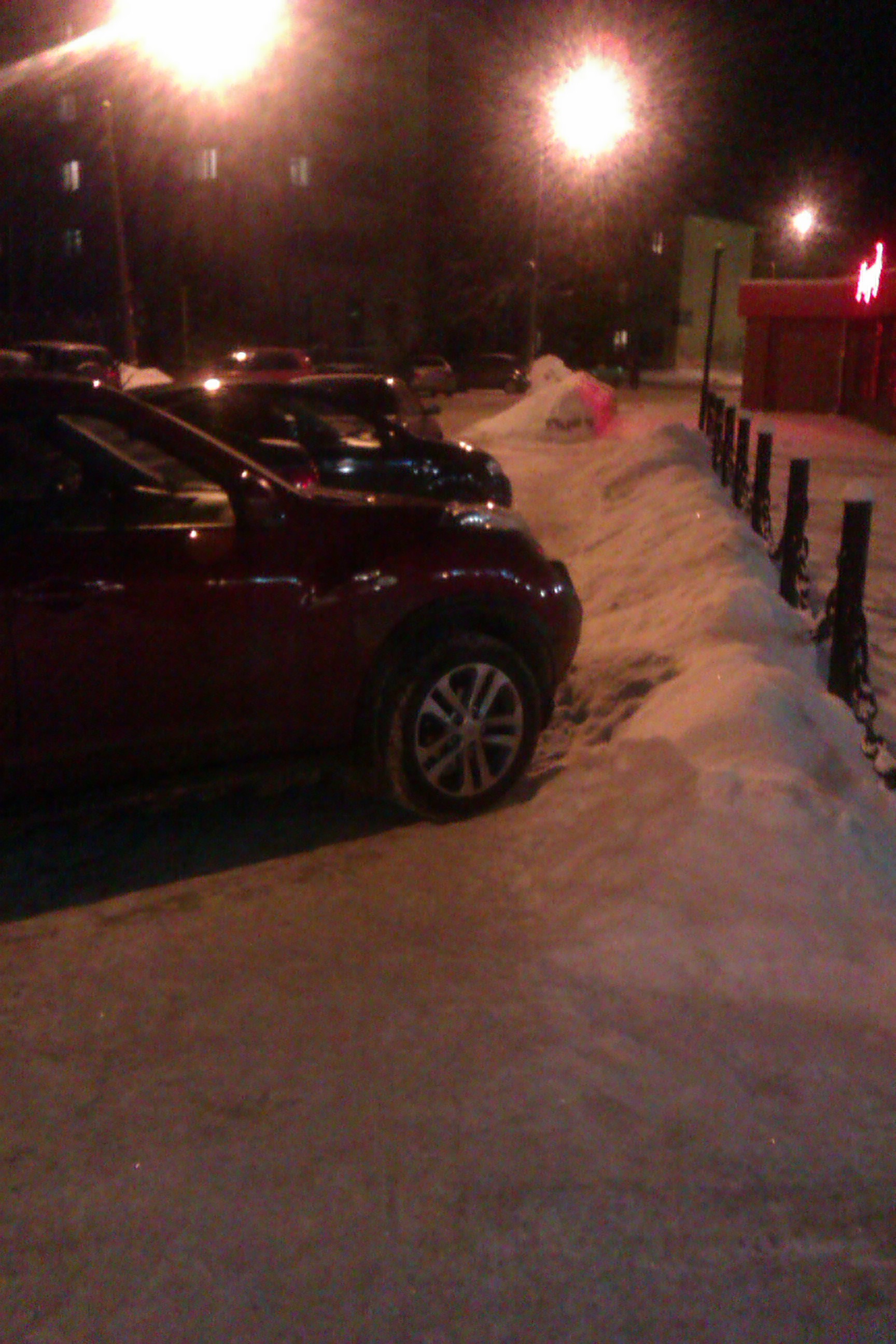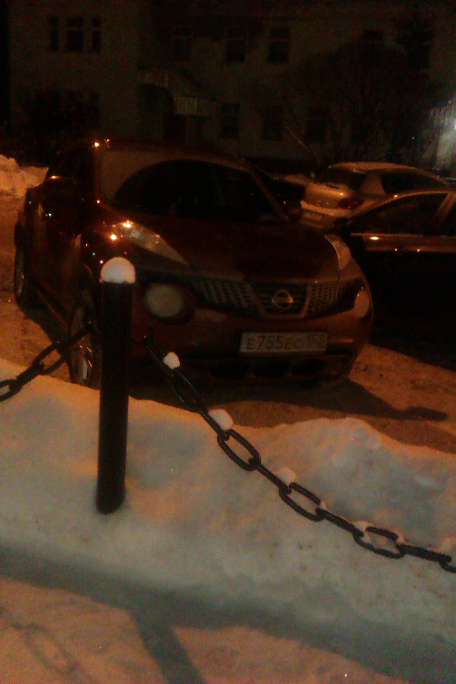 Е755ЕС152 Ниссан Джук, ул. Бутлерова в районе художественной школы, 15.01.2013 20:00. Парковка на тротуаре, приходится обходить по прилегающей территории или выходить на проезжую часть