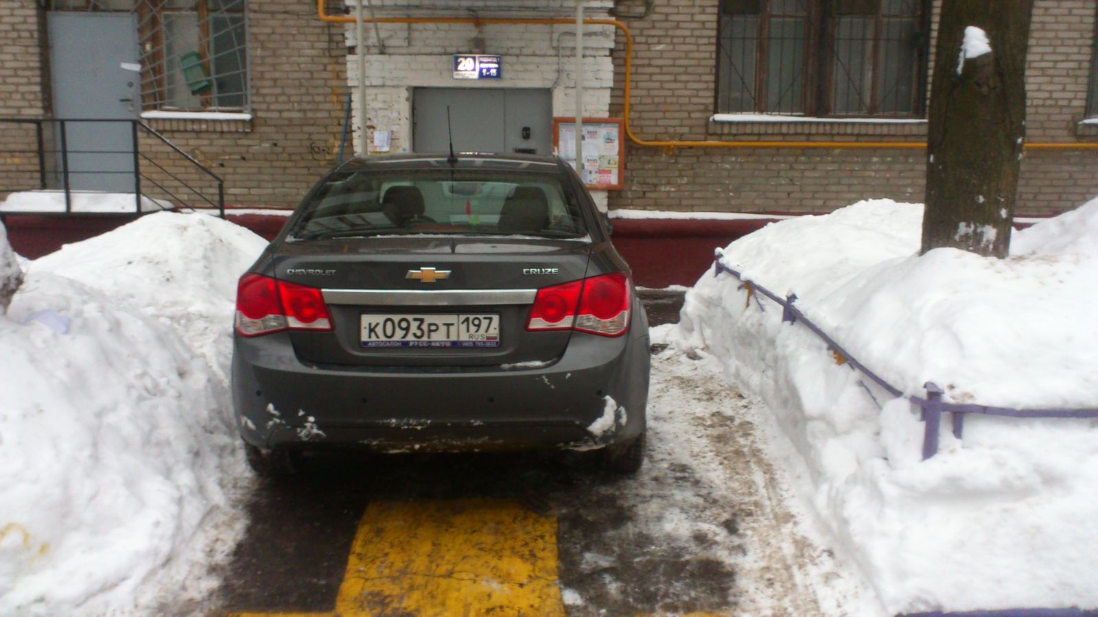 Парковка у подъезда Постоянно паркуется у подъезда. Ул. Кедрова д.20, Шевроле круз ( К093РТ 197) Дата: 25-01-2013, 15:41
