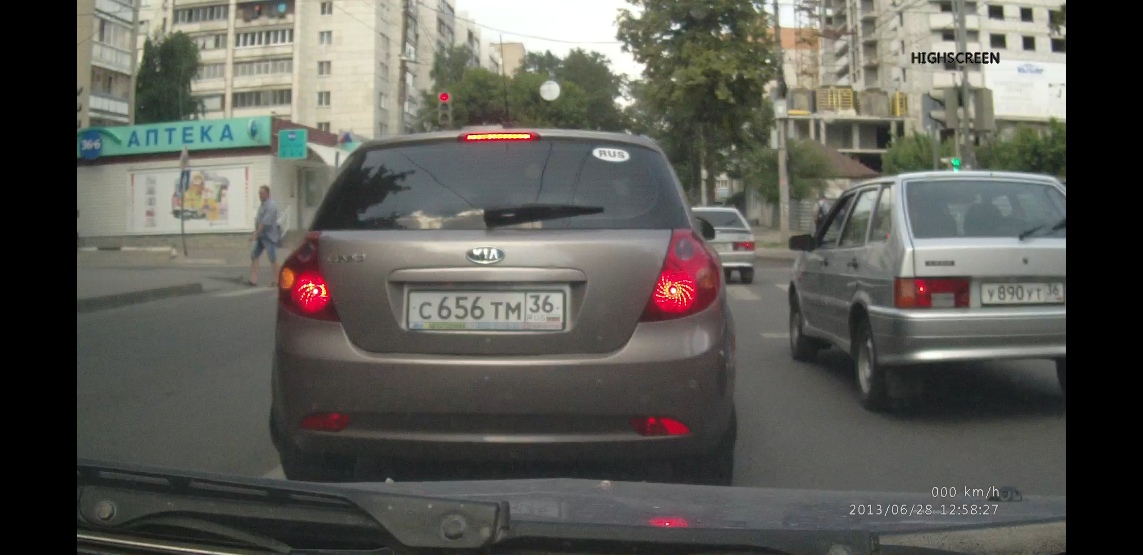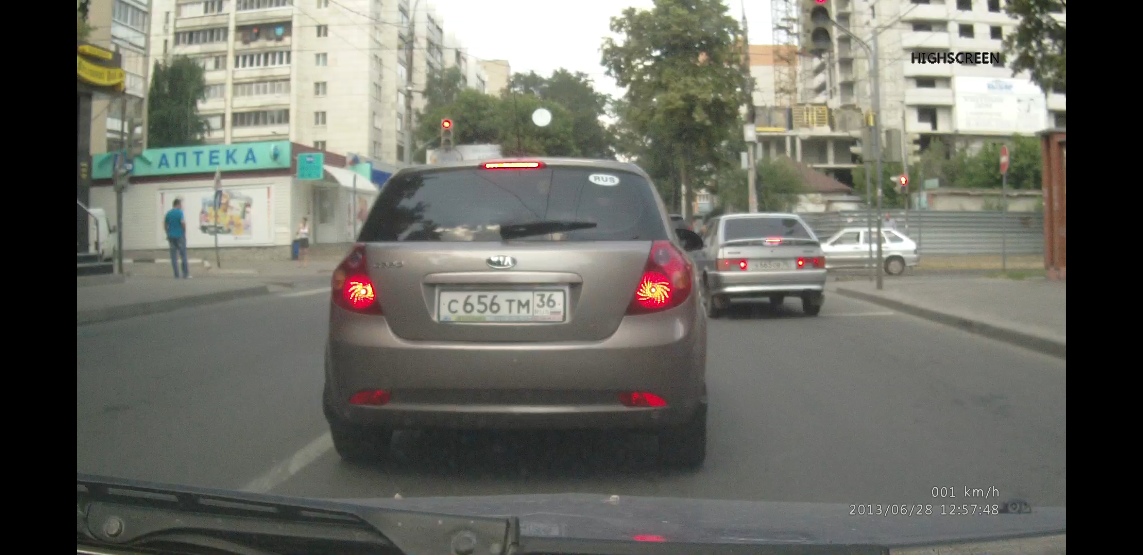 Проезд на красный сигнал светофора Номер К 665 ОВ 36Улица Среднемосковская и Революции 1905 года (перекресток) Дата: 6-07-2013, 13:09