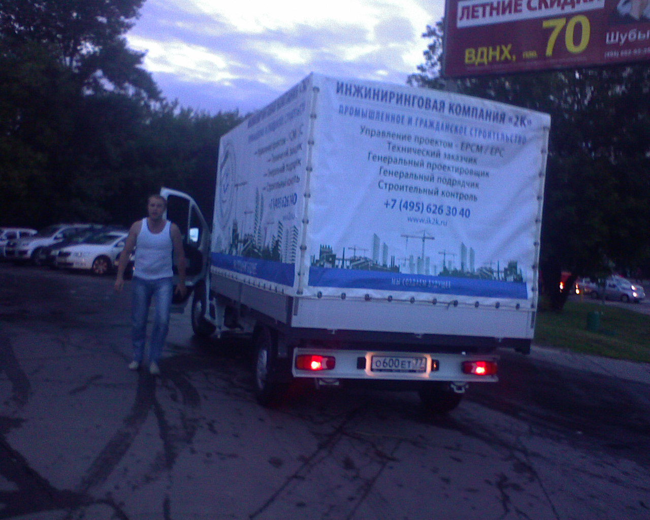 О 600 ЕТ 77, 08 июля 2013г, примеро 22ч, тротуар возле магазина Продукты по адресу ул. Осташковская, д.21. Водитель так разворачивался, что чуть не снес. После того как увидел попытку сфотографировать, вышел из кабины и попытался проучить автора фото, вел себя очень агрессивно, замахивался кулаками и угрожал убить. Хам - это очень мягко сказано, больше подходит определение "бандит".
