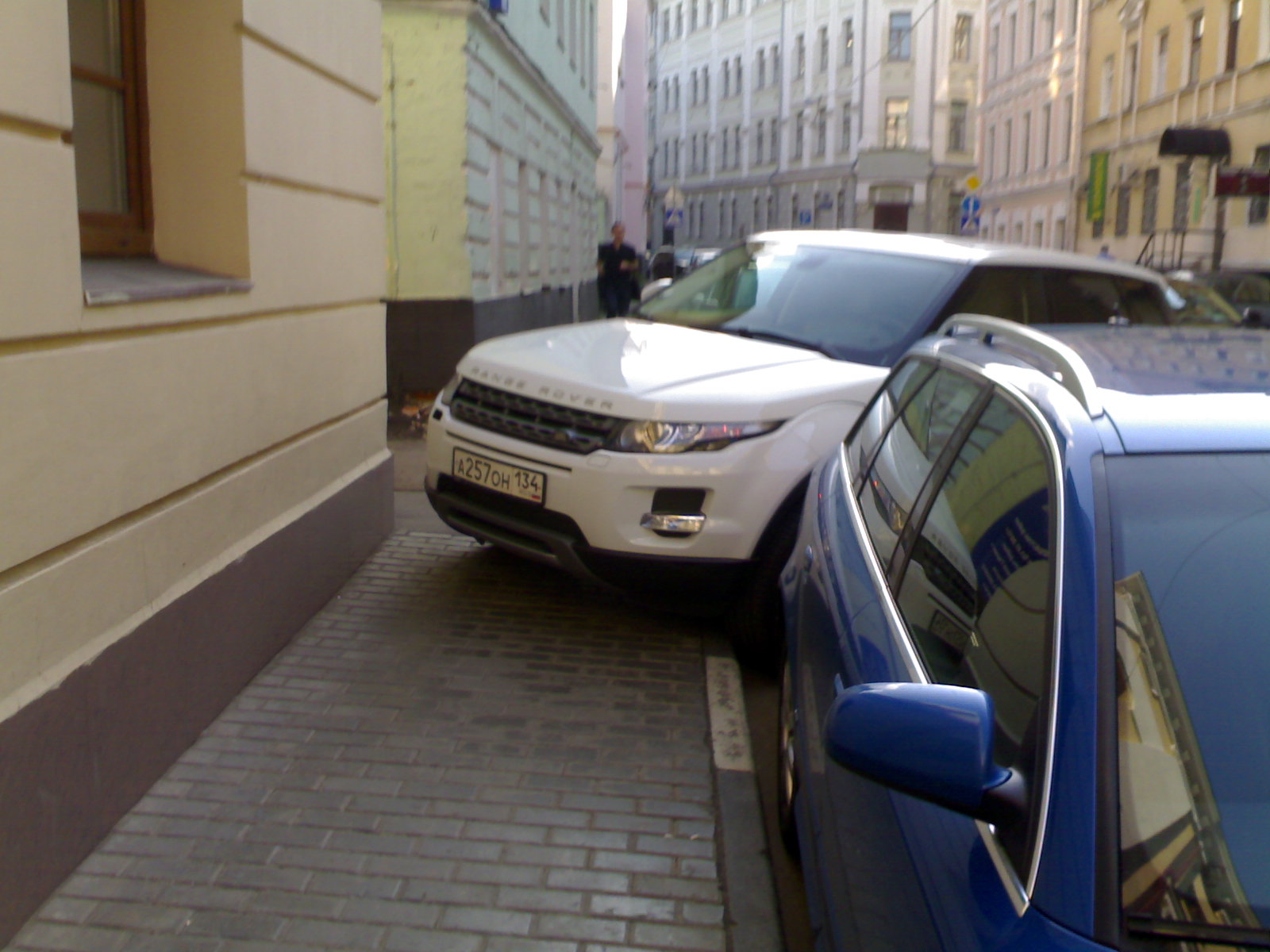 Парковка на тротуаре а257он134, ул.Макаренко, угол с ул.Чаплыгина, д. 20. стр.1, 10.07.2013, 19.30. Перегорожен тротуар. Дата: 18-07-2013, 11:06