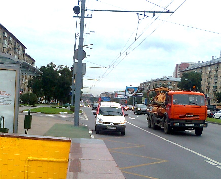 27.08.2013 08:30 на самом повороте с улицы Крупской на Ленинский проспект на автобусной остановке, на желтой разметке для общественного транспорта припарковалать машина экспресс- доставки.