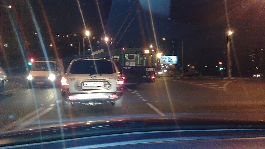 Уже несколько раз видел, как троллейбус лихо справа объезжает очередь машин, ожидающих левый поворот, и поворачивает налево, подрезая тех, кто совершает левый поворот с левого ряда.