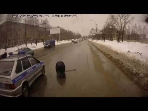 Патрульная машина сбивает пешехода!!!